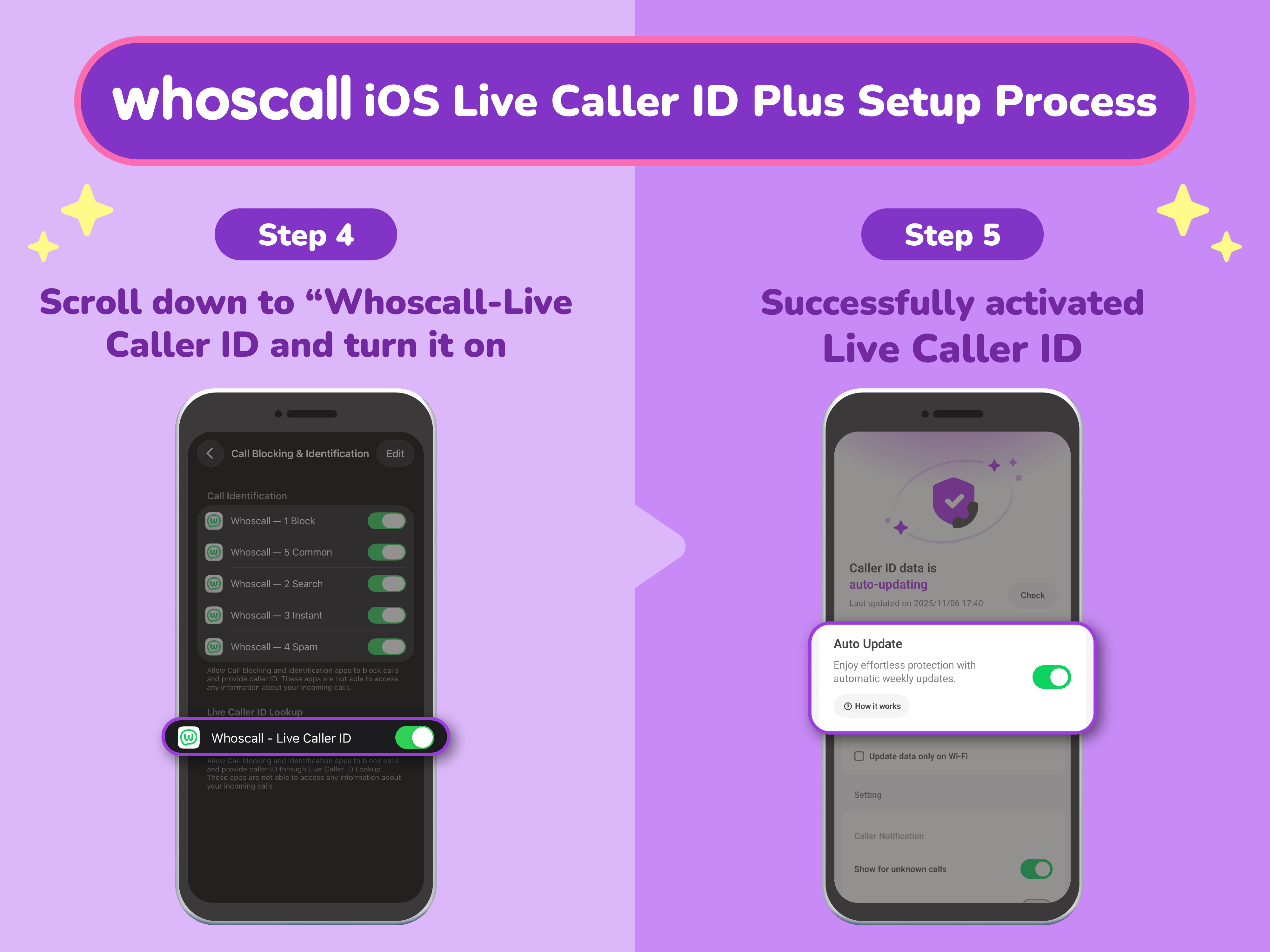 For iOS users, simply update the app to the latest version and ensure that the Whoscall Caller ID feature is enabled to enjoy the latest protection network!