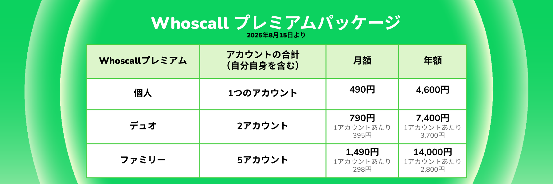 Whoscallプレミアム全プラン概要