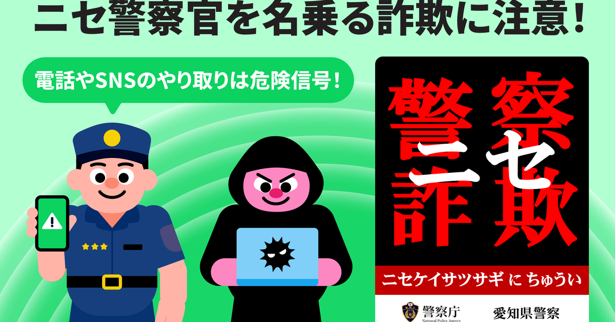 最近、警察官をかたる詐欺(通称:ニセ警察詐欺)の被害が全国で急増しています。