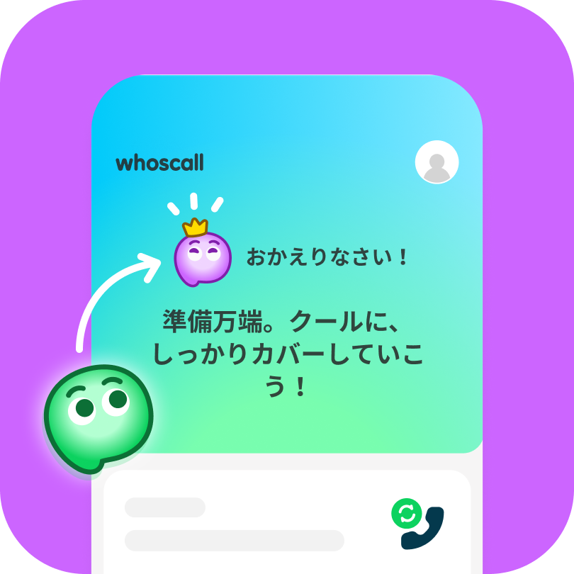 ホーム画面:Whoscall のキャラクター「Vee」がパープルになります!