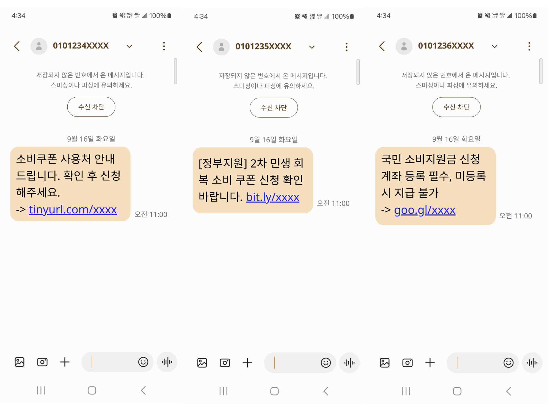 - 소비쿠폰 스미싱은 단축 URL + 정부 사칭 문구를 활용