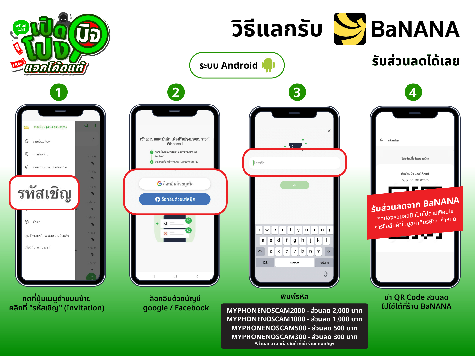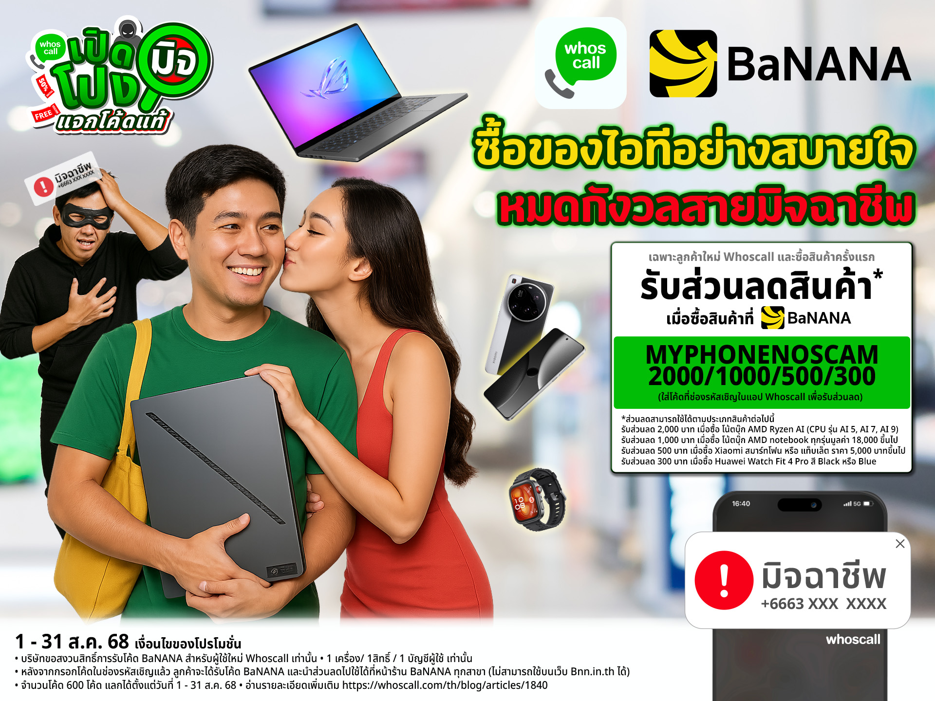 💻 พิเศษ! Whoscall x BaNANA แจกโค้ดแท้ส่วนลดสินค้าใน BaNANA Shop