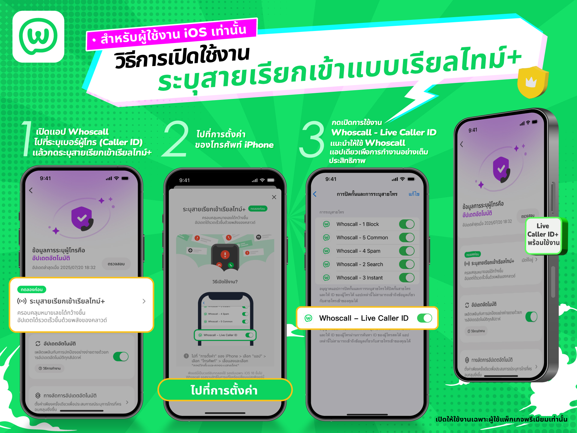 - อัปเดตแอป Whoscall เป็นเวอร์ชันล่าสุด (ใช้งานบน iOS 18.2 หรือสูงกว่า)