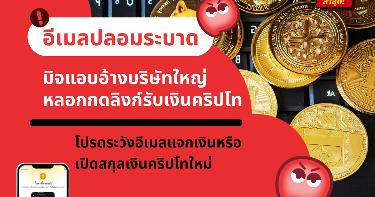 เตือนภัยด่วน อีเมลปลอมแอบอ้างบริษัทดังหลอกกดลิงก์รับเงินคริปโทระบาดหนัก