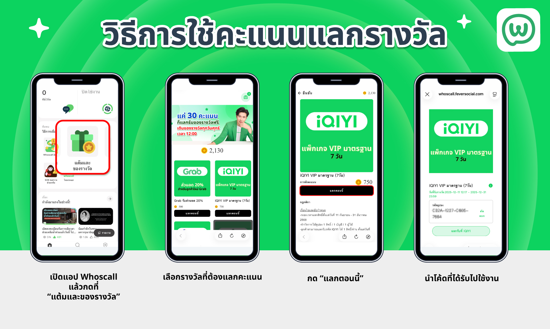 - ใช้ Whoscall Point 30 คะแนน แลกรับแพ็กเกจ iQIYI VIP Standard 7 วัน