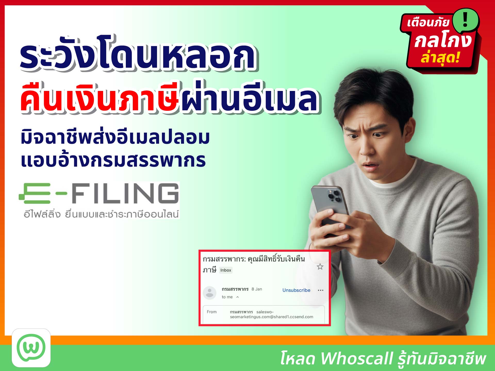 ขณะนี้พบมิจฉาชีพได้พัฒนากลโกงในหลายรูปแบบโดยส่งอีเมลแอบอ้างเป็นกรมสรรพากร