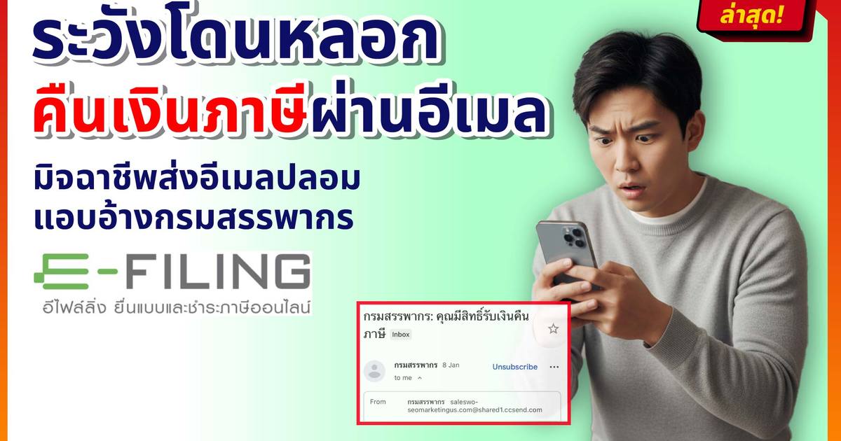 ระวังโดนหลอกคืนเงินภาษีผ่านอีเมล มิจฉาชีพส่งอีเมลปลอมแอบอ้างกรมสรรพากร