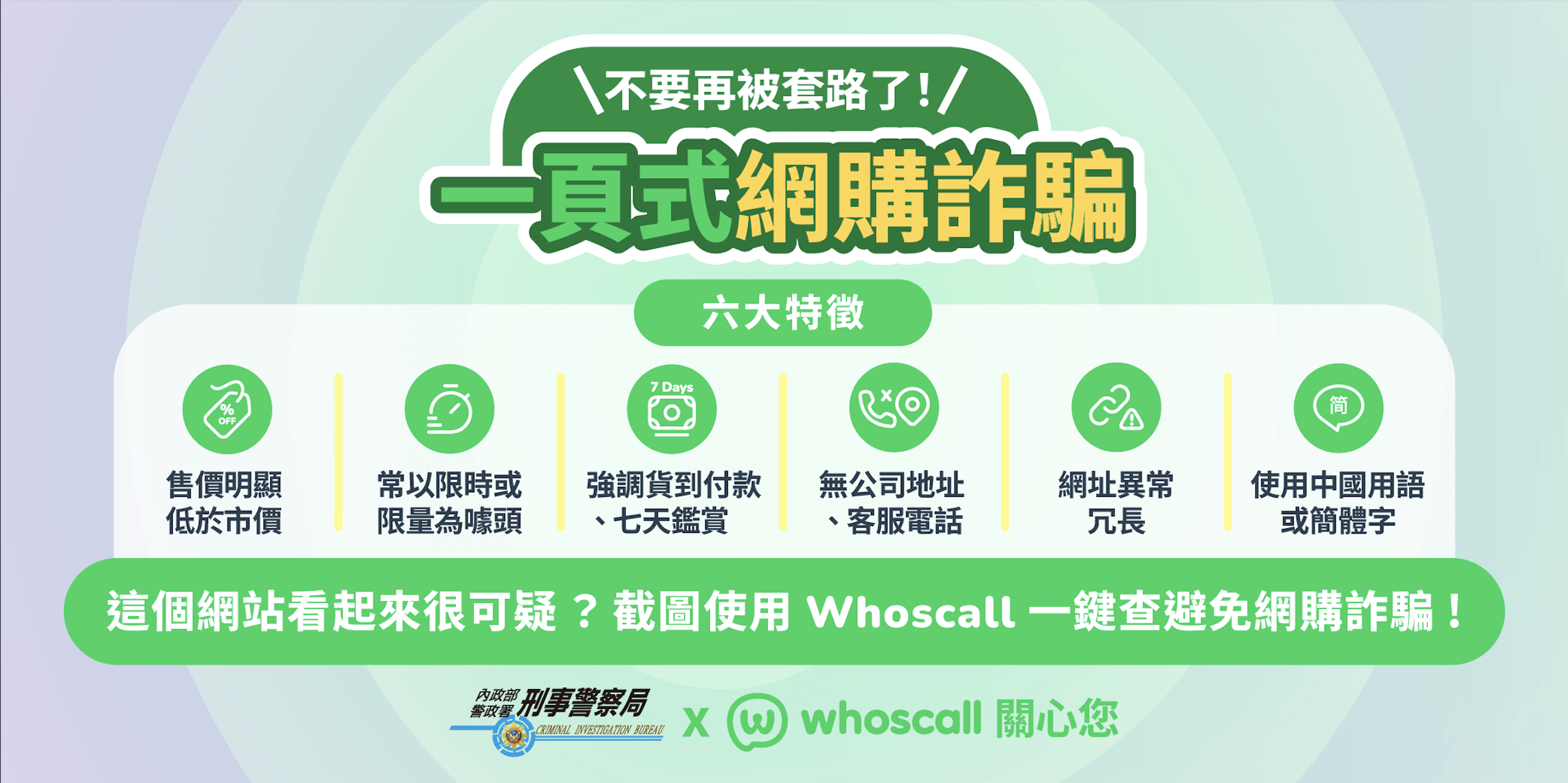 看到陌生簡訊、社群貼文、私訊給的購物連結時,先用 Whoscall 一鍵查 檢查網址或截圖,3 秒內就能判斷詐騙風險,降低誤入釣魚網站的機率。