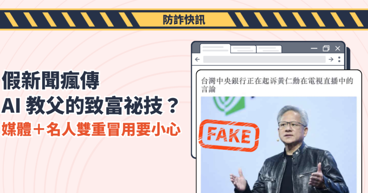 看起來像是 TVBS、聯合報等知名媒體網站的頭條新聞,甚至搭配黃仁勳受訪影片、記者署名與新聞分類欄位,但實際上是詐騙集團假冒的釣魚網站!