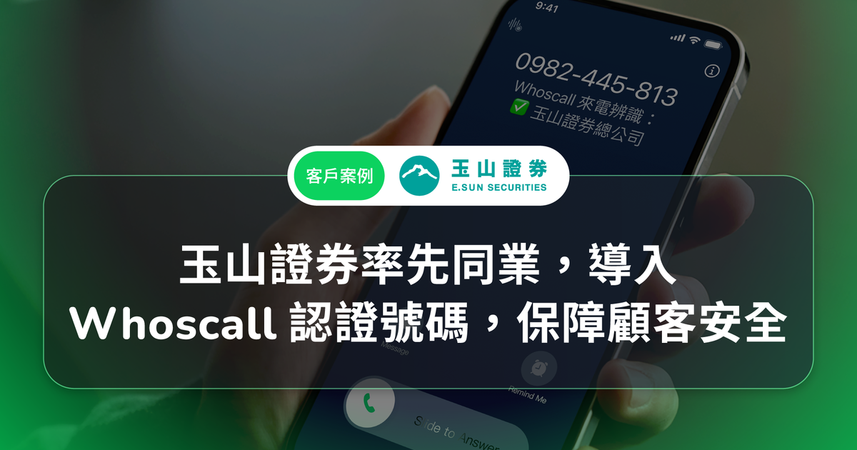 玉山證券啟用Gogolook旗下國民防詐 App Whoscall的商家認證號碼服務,成為首家採用此技術的證券公司,此項創新舉措不僅顯示了玉山證券對顧客權益的重視,更可避免不法人士冒用品牌形象對顧客進行詐騙,跨界合作共同守護顧客資產。