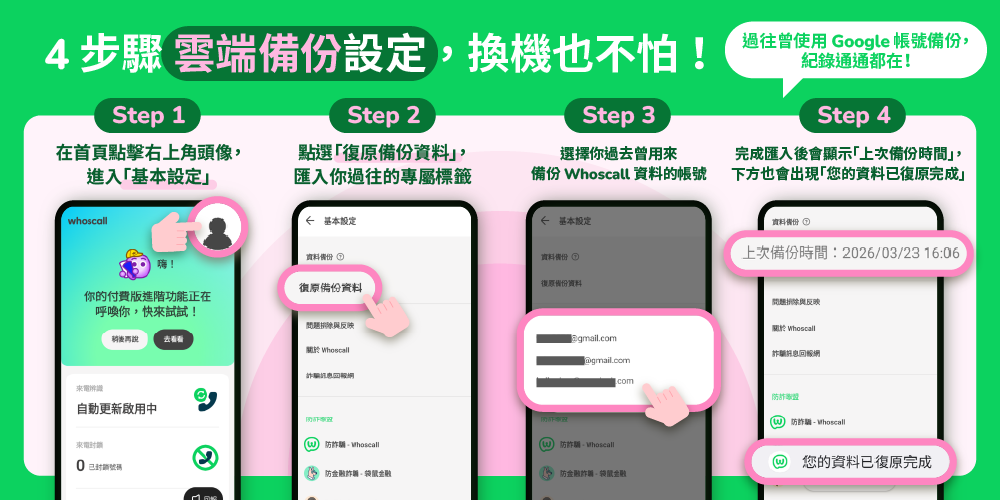 Step 3:選擇你過去曾用來備份 Whoscall 資料的帳號